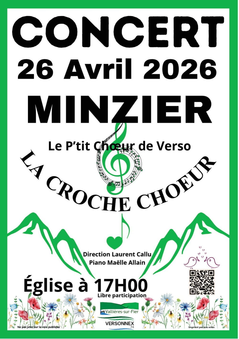 Concert à l’église de Minzier le dimanche 26 avril 2026 à 17h